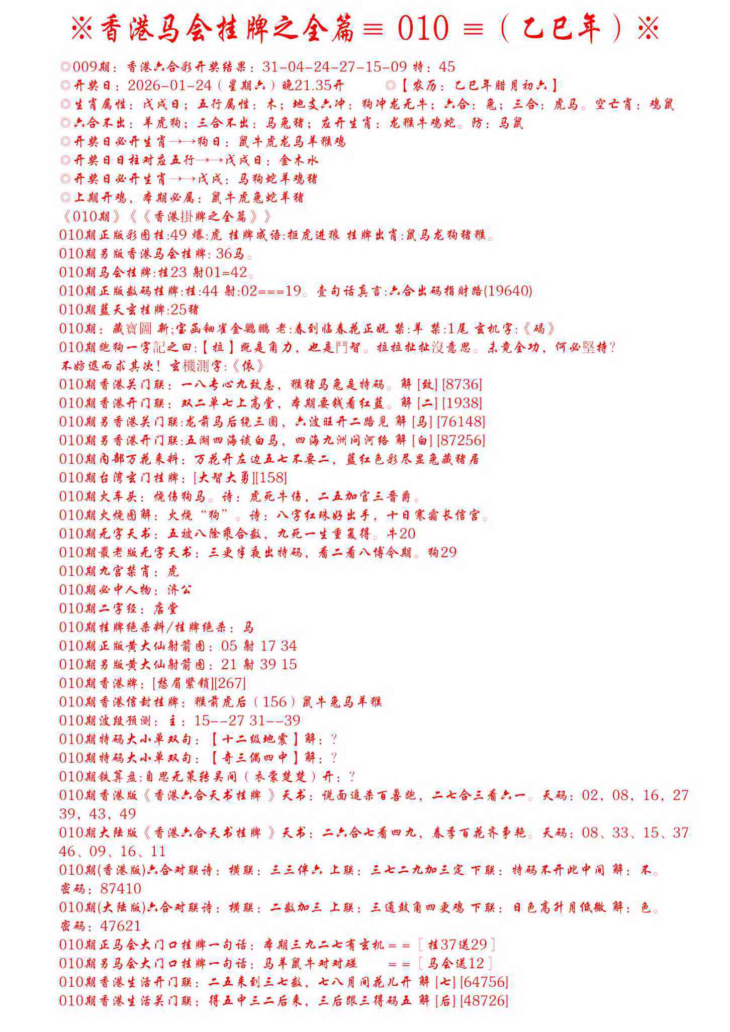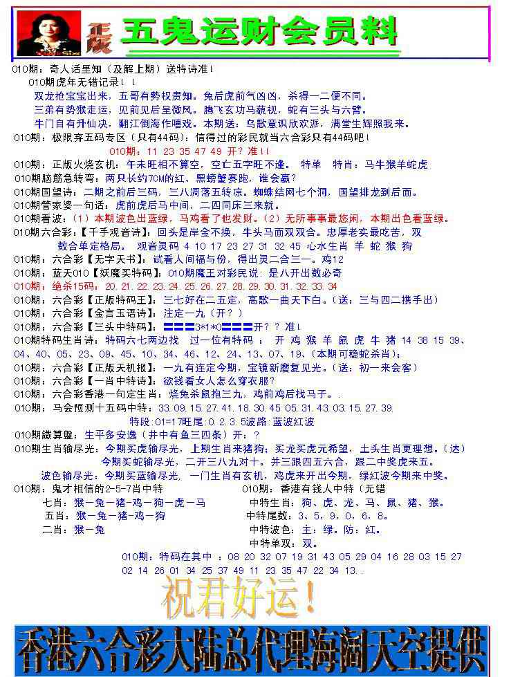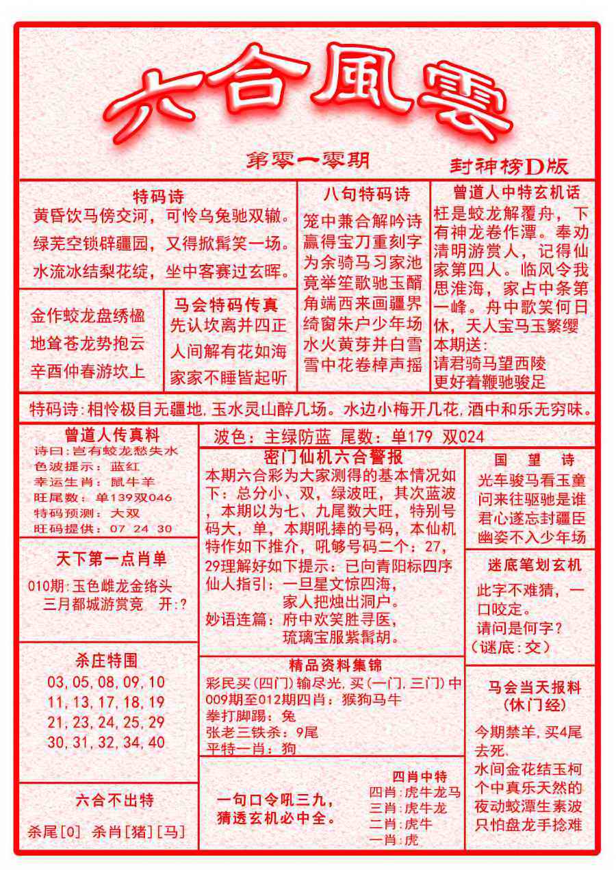 1760 大富翁 1761 侨乡狂扫黑庄 1765 马经王牌料 1766 香港马会专刊A