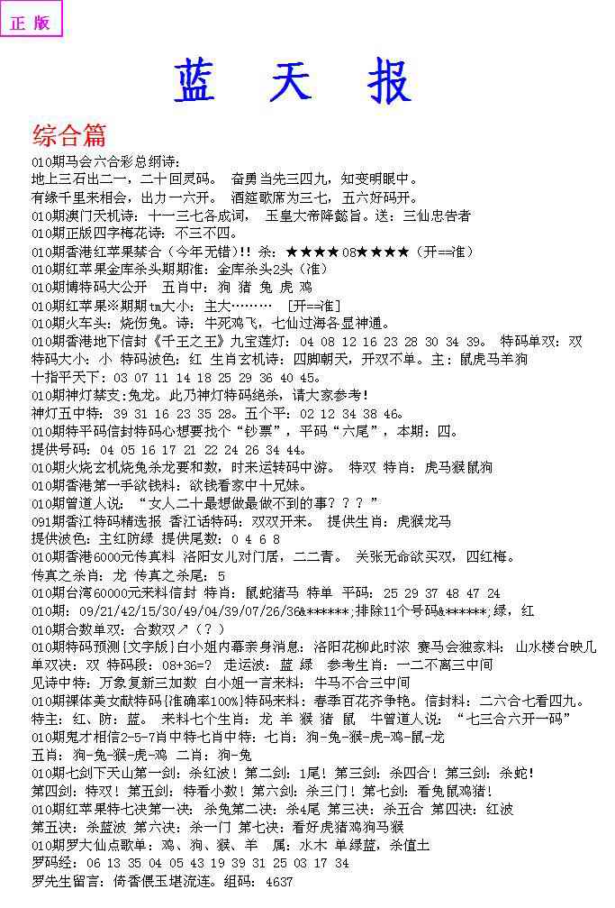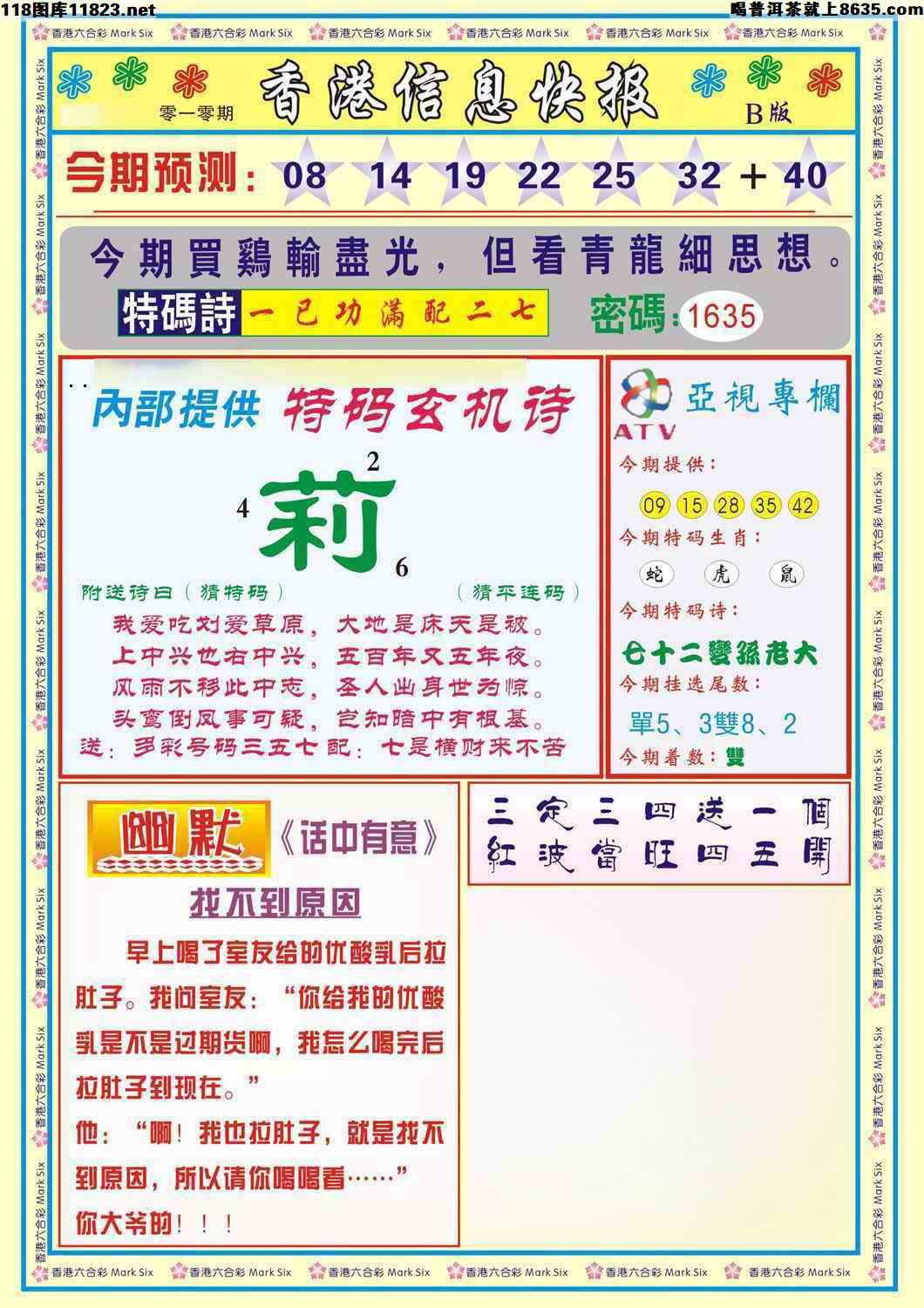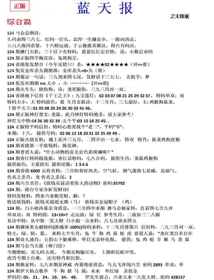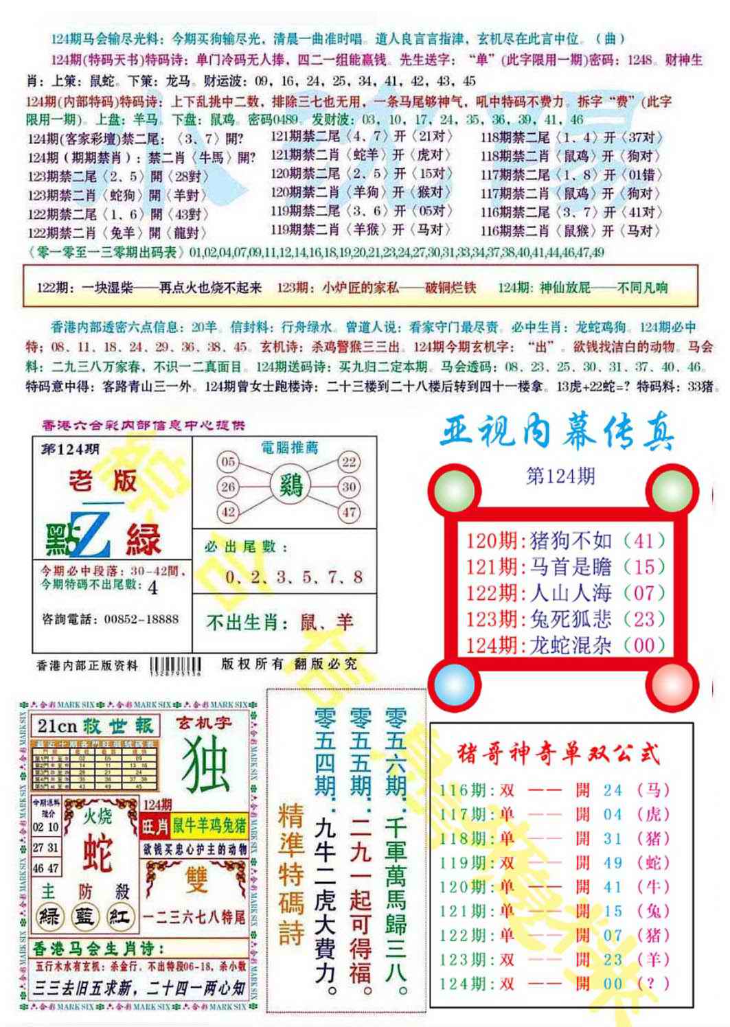 1581 精准传真报 1582 新天线宝宝内幕报 1583 当期狗仔版 1585 白姐泄密