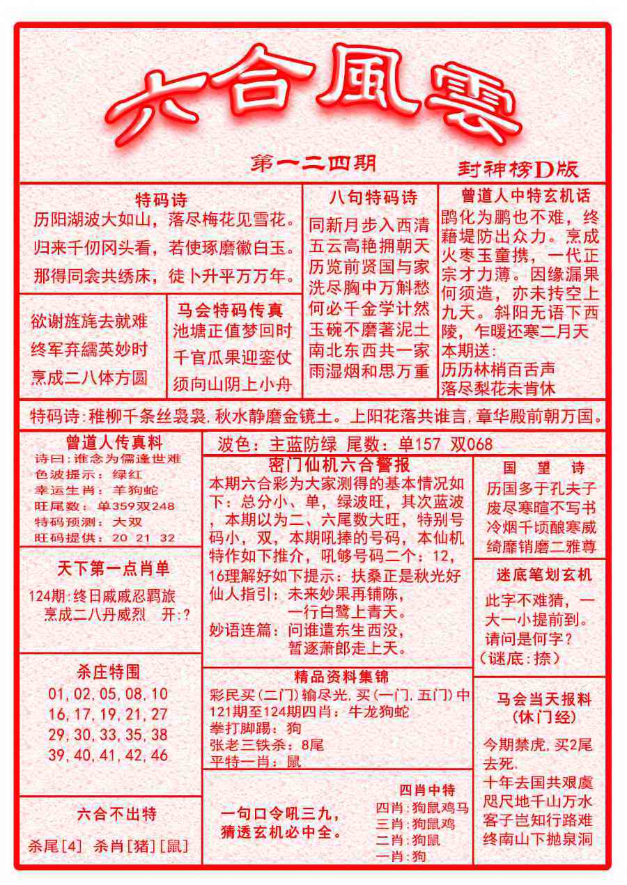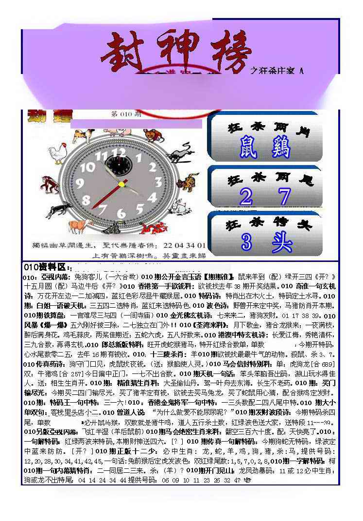 1460 封神榜B 1461 六合风云A 1462 六合风云B 1463 曾道人内幕泄密