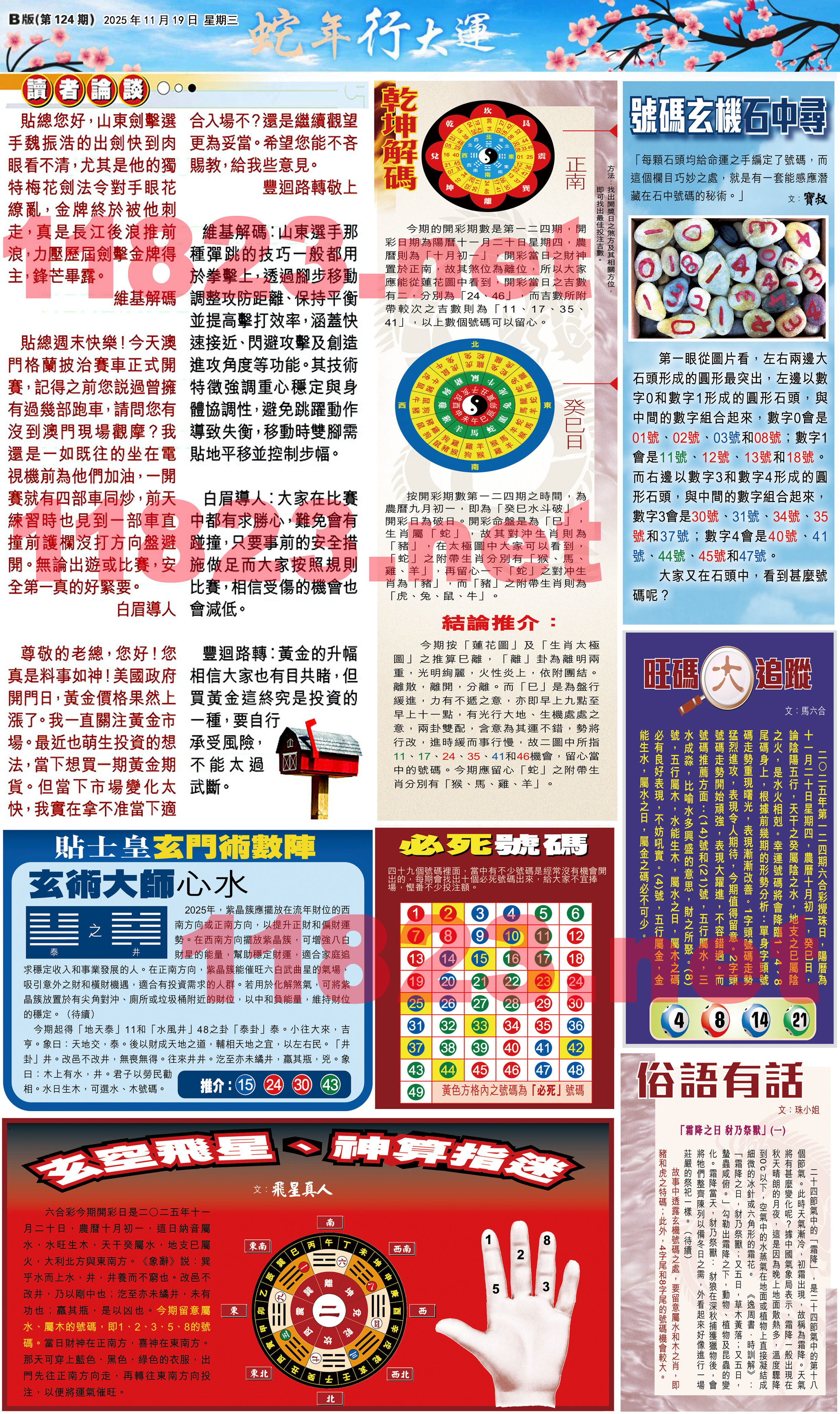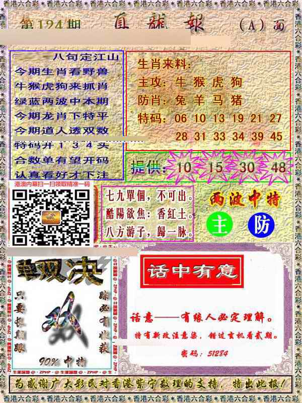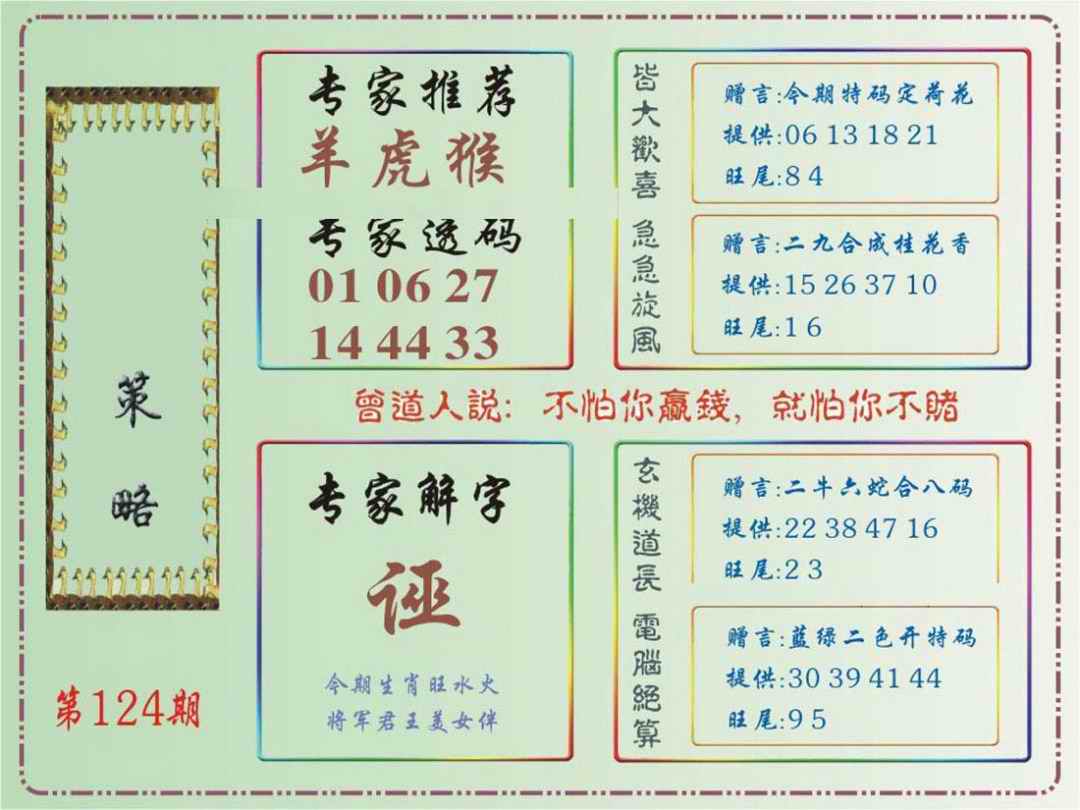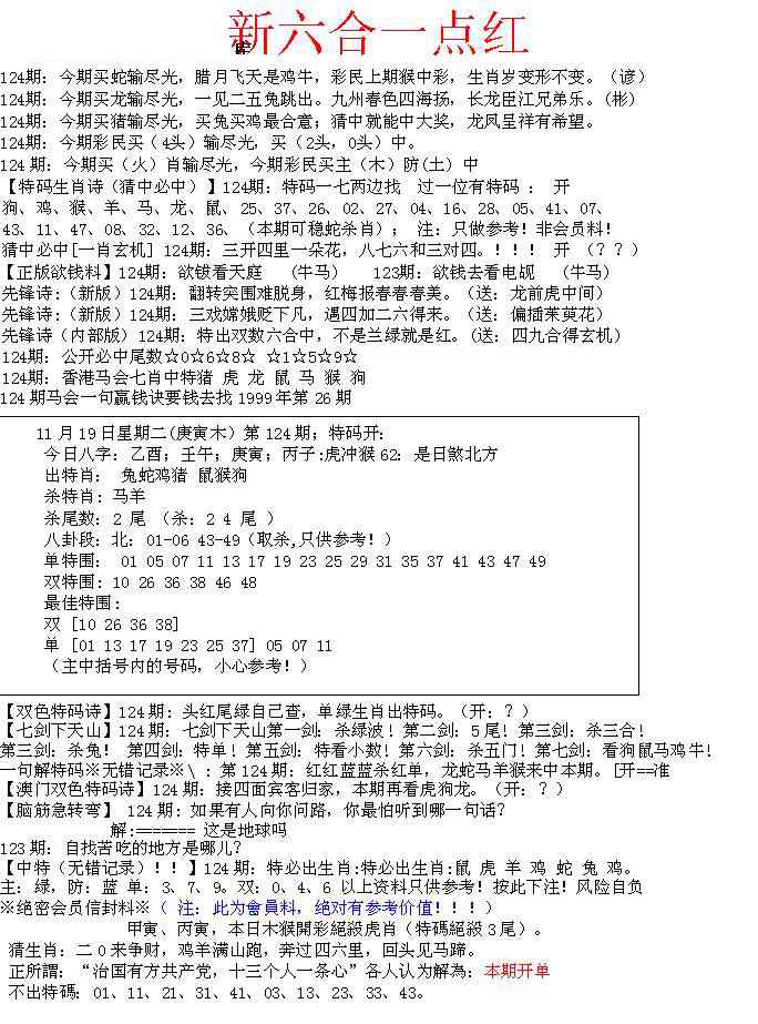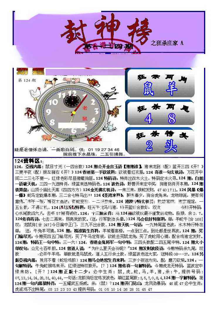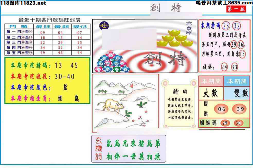 063 六合禅机A 064 六合禅机B 069 特 新 报A 070 特 新 报B