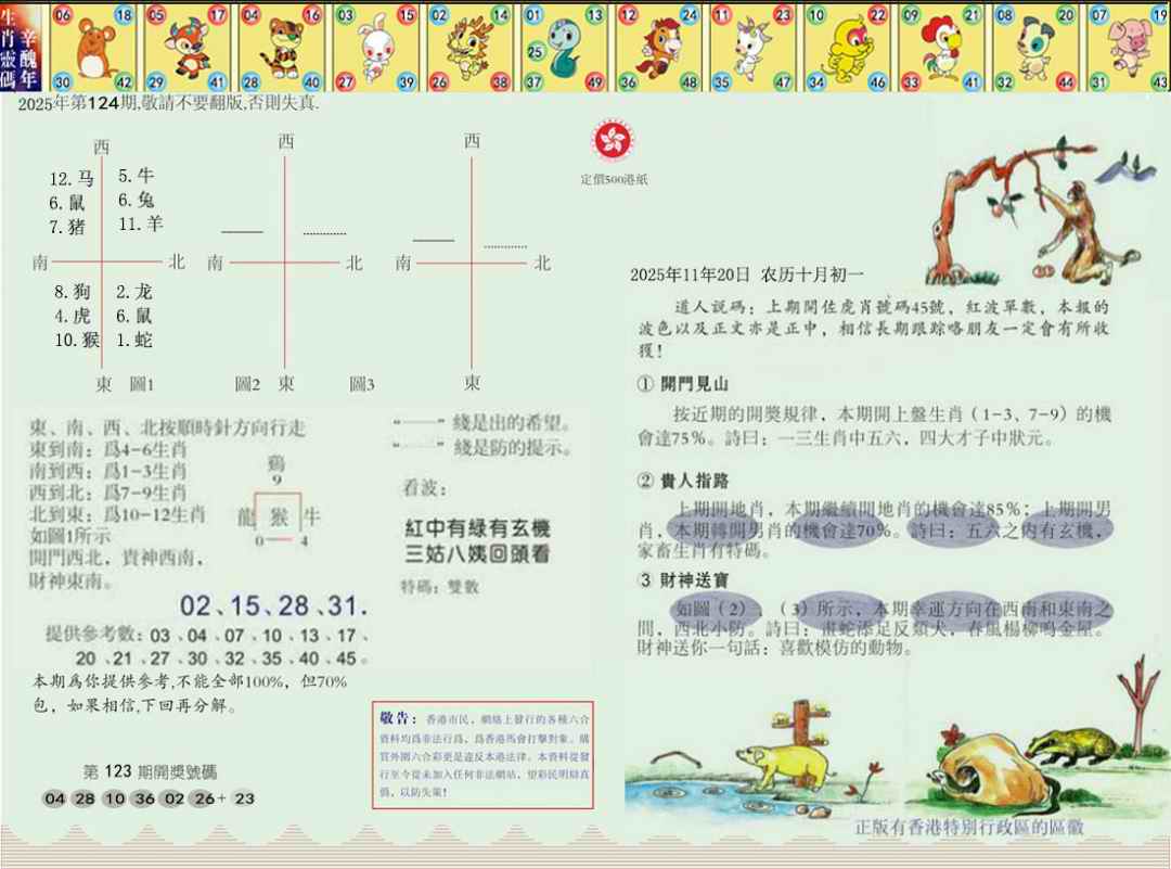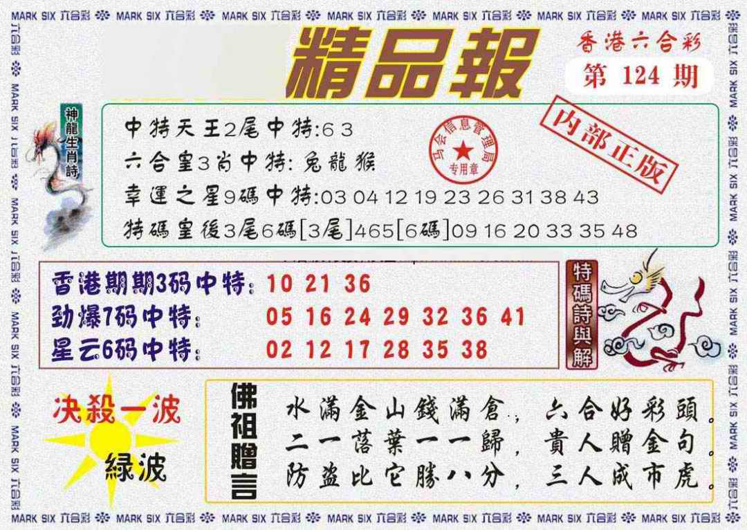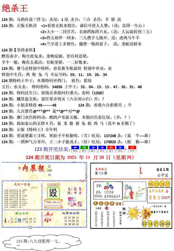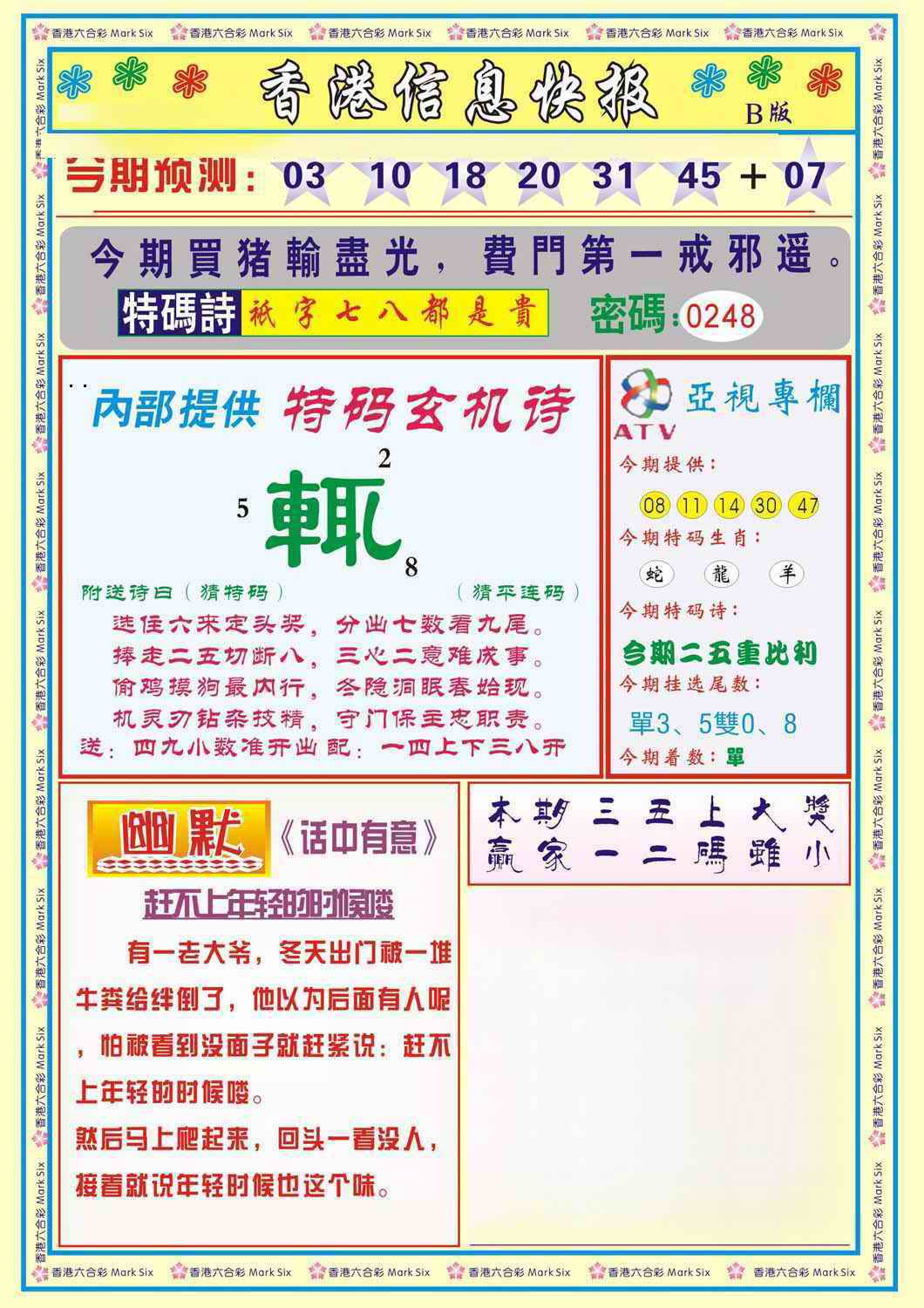 063 六合禅机A 064 六合禅机B 069 特 新 报A 070 特 新 报B