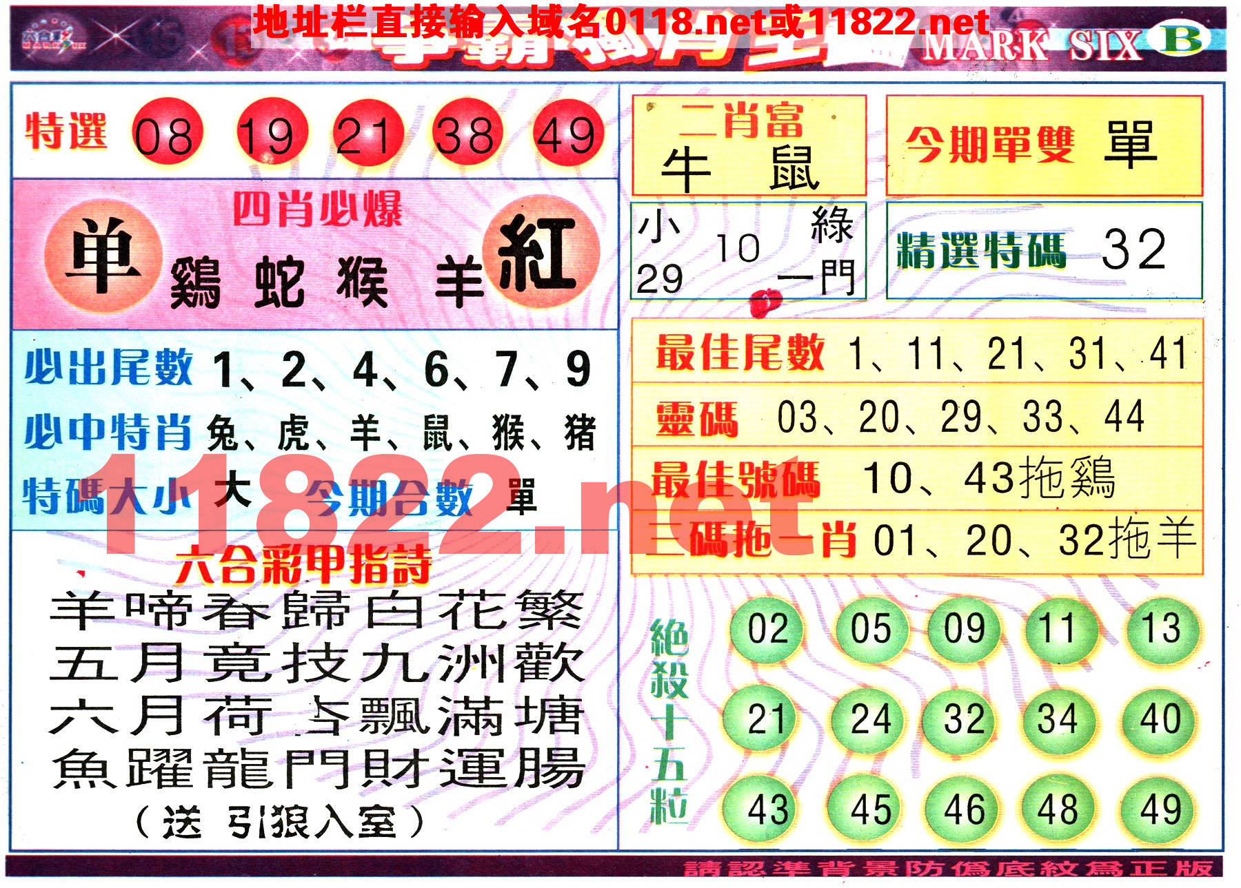 441 六合解霸A 442 六合解霸B 445 白姐特新刊A 446 白姐特新刊B
