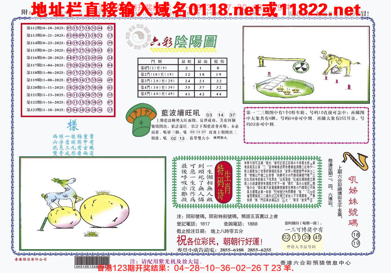 065 香港神算 066 澳门三合图 067 台湾神算通 068 六彩阴阳图