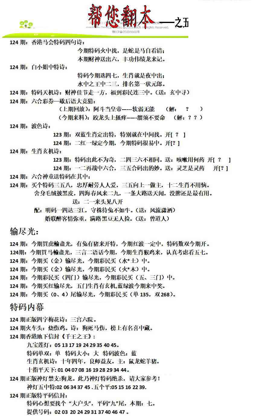 361 大财经发财图 577 金旺旺信箱 553 九方大师 156 内部透码(信封)