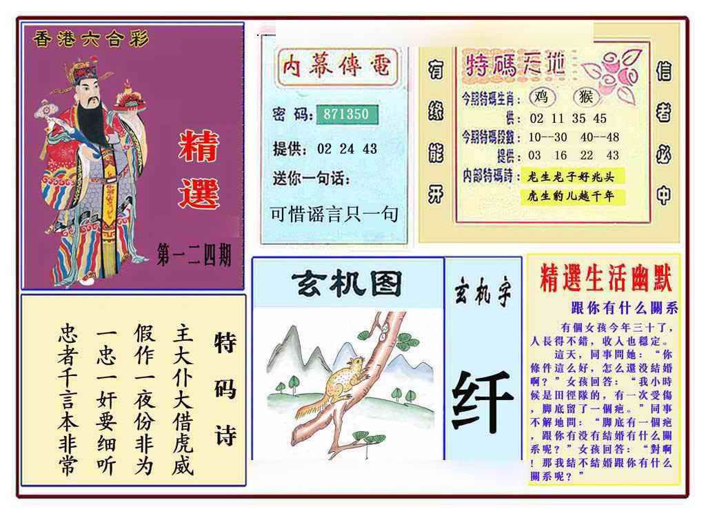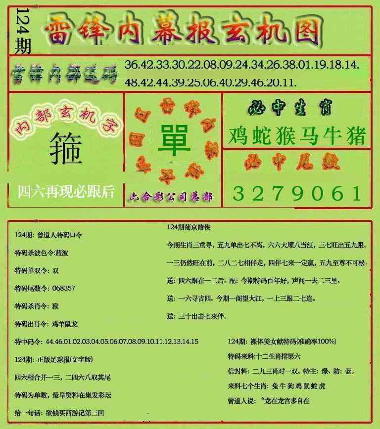 233 内幕玄机加大版A 234 内幕玄机加大版B 235 六合心经A 236 六合心经B