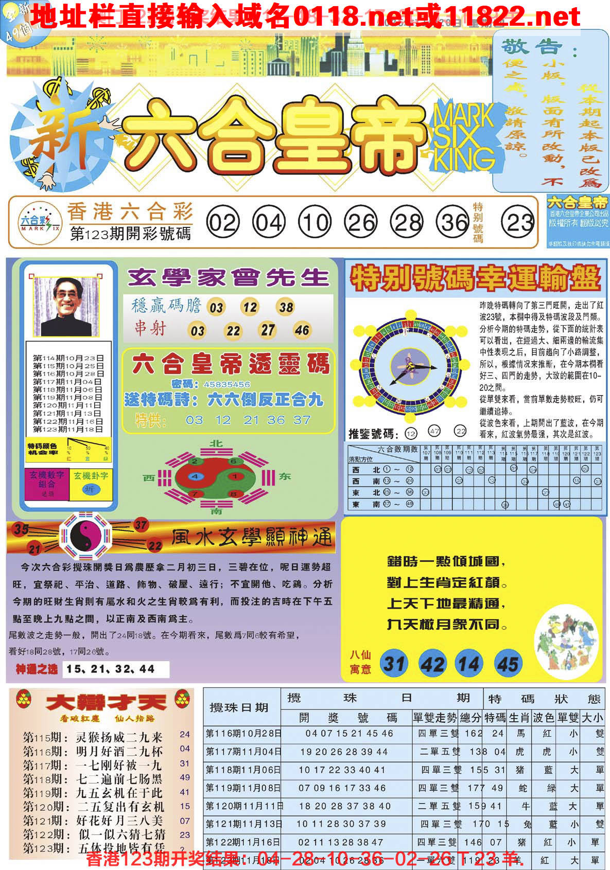 163 六合冠军版A 164 六合冠军版B 203 姜子牙神算A 204 姜子牙神算B